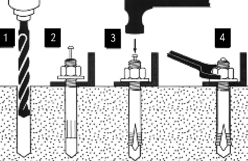 Gli ancore di sciopero sono progettati per l'ancoraggio in cemento. Inserisci l'ancoraggio di sciopero in un foro pre-perforato nel calcestruzzo. Imposta l'ancora colpendo l'unghia nell'ancora. L'unghia espande l'ancoraggio di sciopero nel cemento.